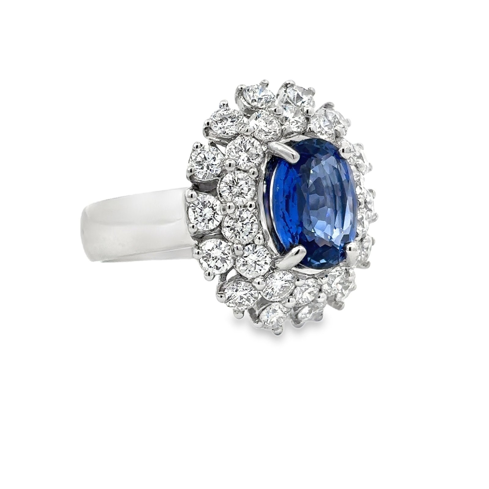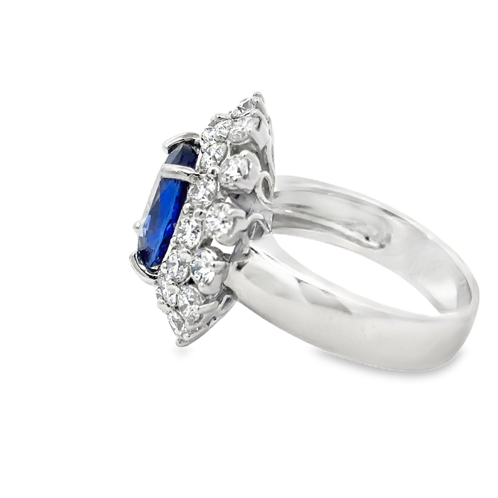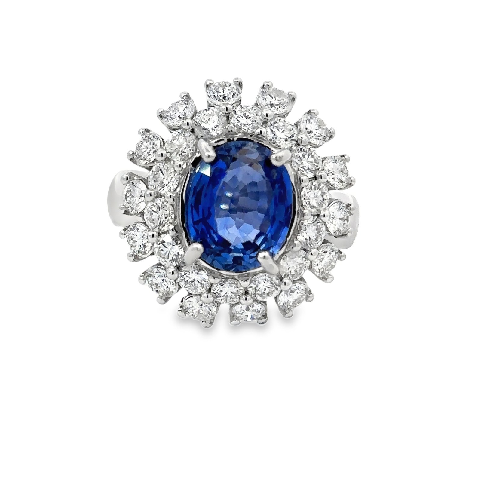 18K White Gold Ring Ceylon Sapphire 3.75 Carat, Diamonds 2.26 Carat