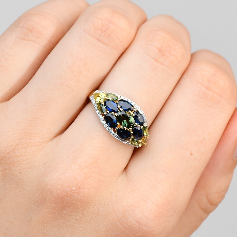 Metal: 9K Yellow & White Gold13 Multi Coloured Sapphires: 3.19ct46 RBC Diamonds: 0.23ctDiamond Colour/Clarity: F/VSProduct ID: 191134