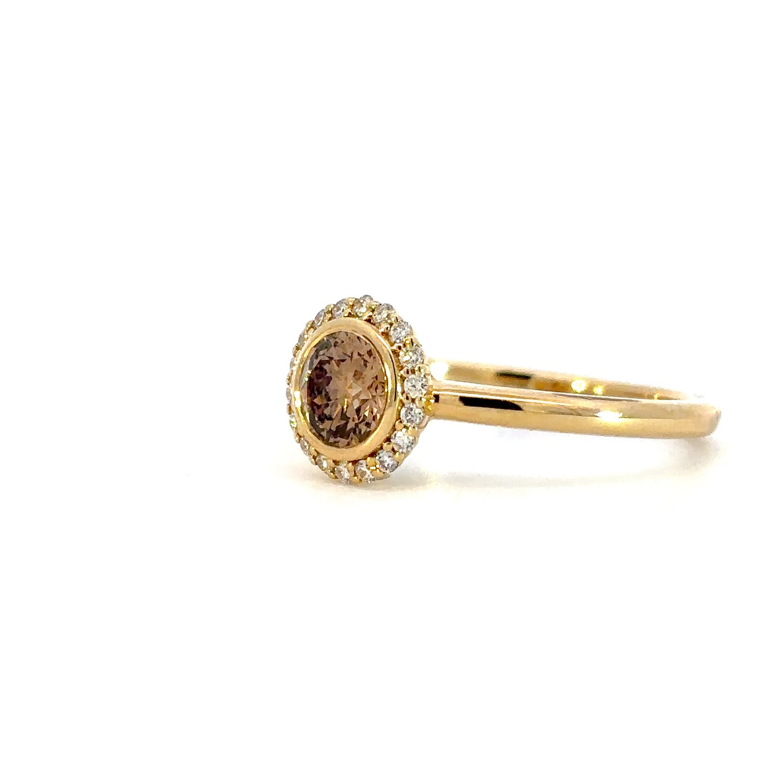 18K Yellow Gold Ring Chocolate Diamond 0.63 Carat Round Diamonds TDW 0.12 Carat