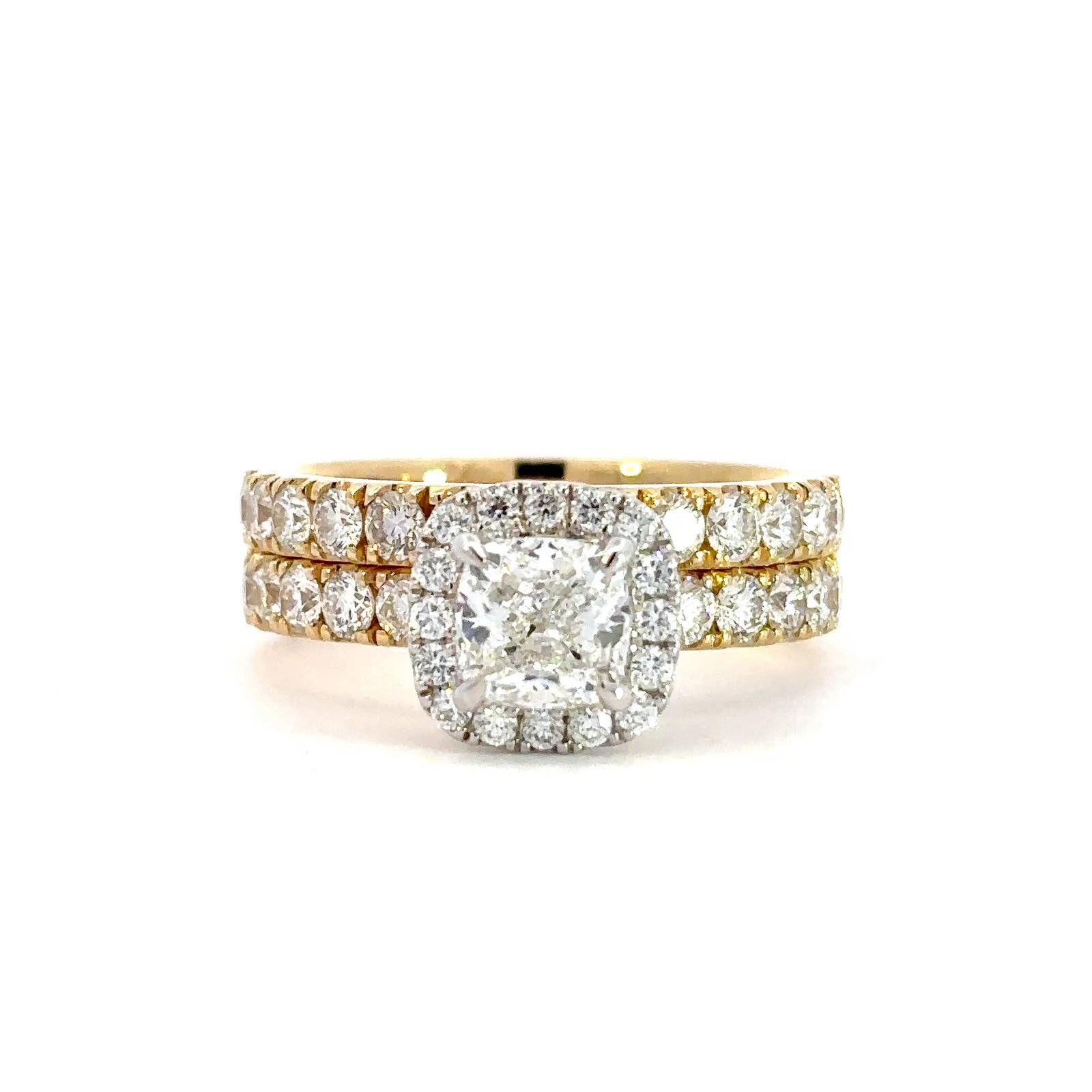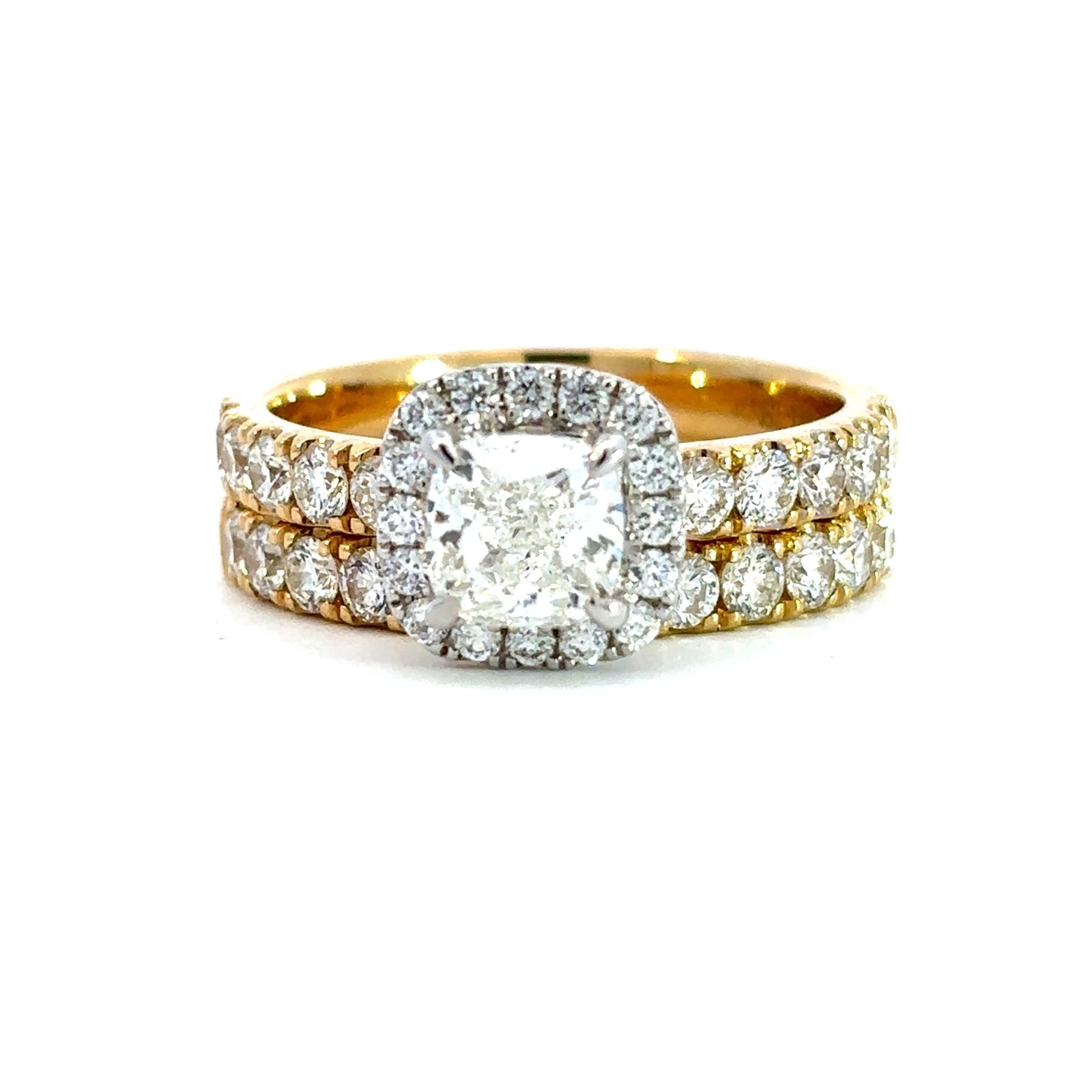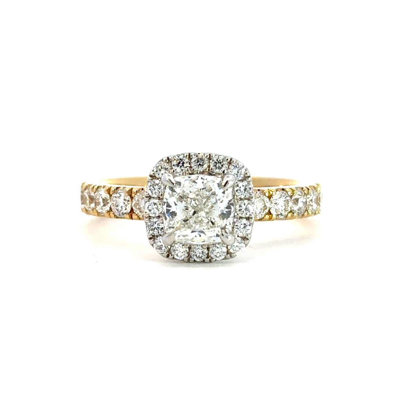 Metal: 18K Yellow & White Gold1 Cusion Diamond Weight: 1.01ct41 Round Diamonds Total Weight: 1.40ctDiamonds Colour/Clarity: G/SI1Product ID: 193968