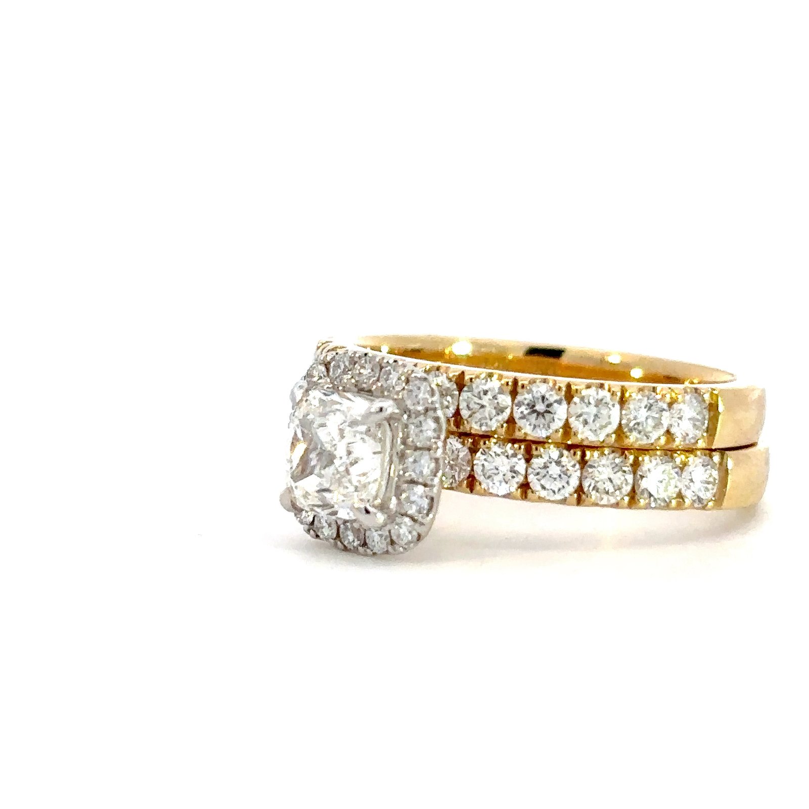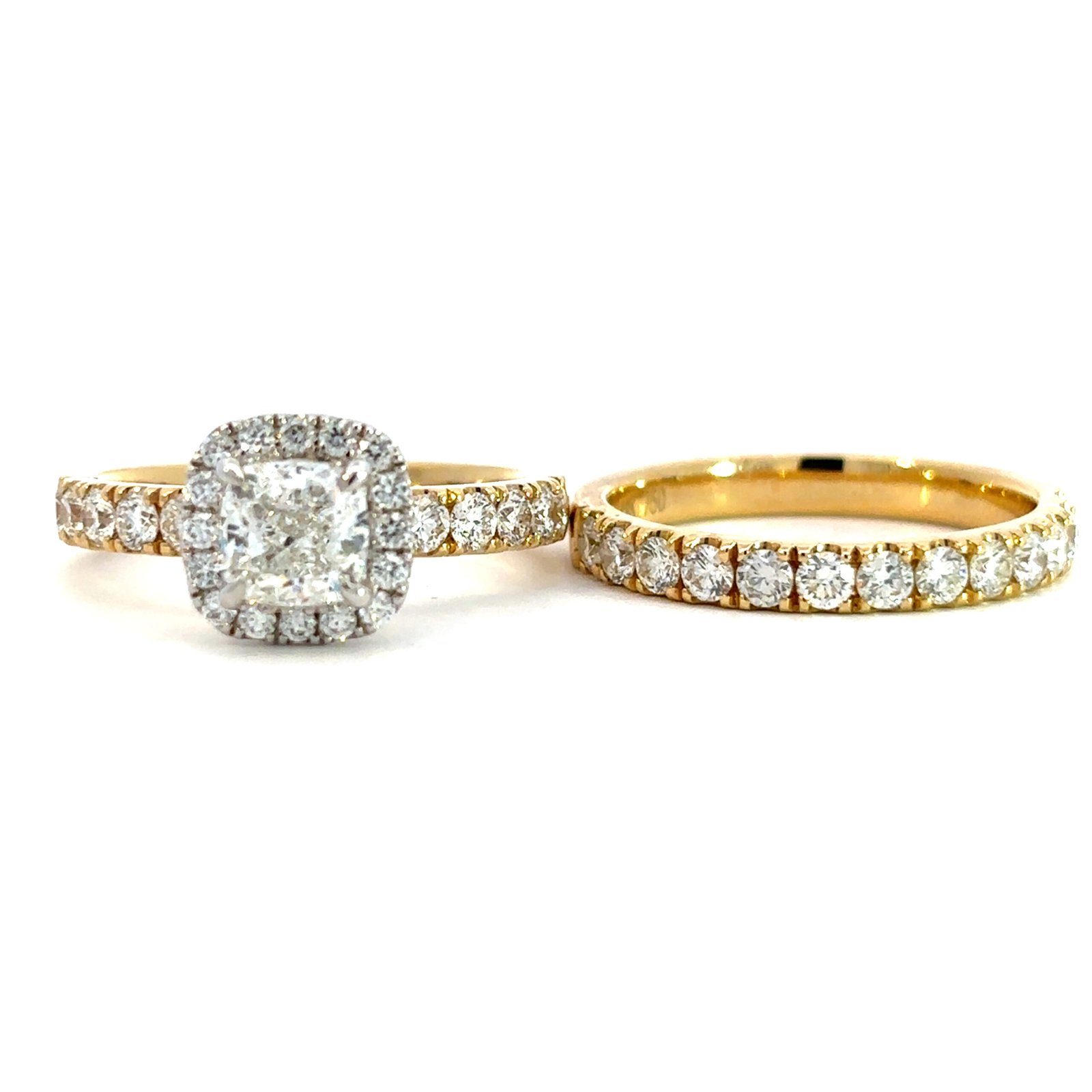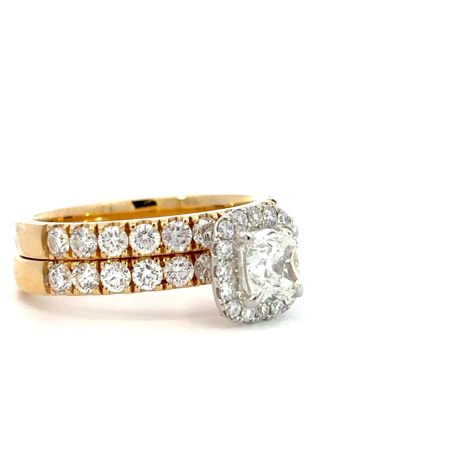 Metal: 18K Yellow & White Gold1 Cusion Diamond Weight: 1.01ct41 Round Diamonds Total Weight: 1.40ctDiamonds Colour/Clarity: G/SI1Product ID: 193968