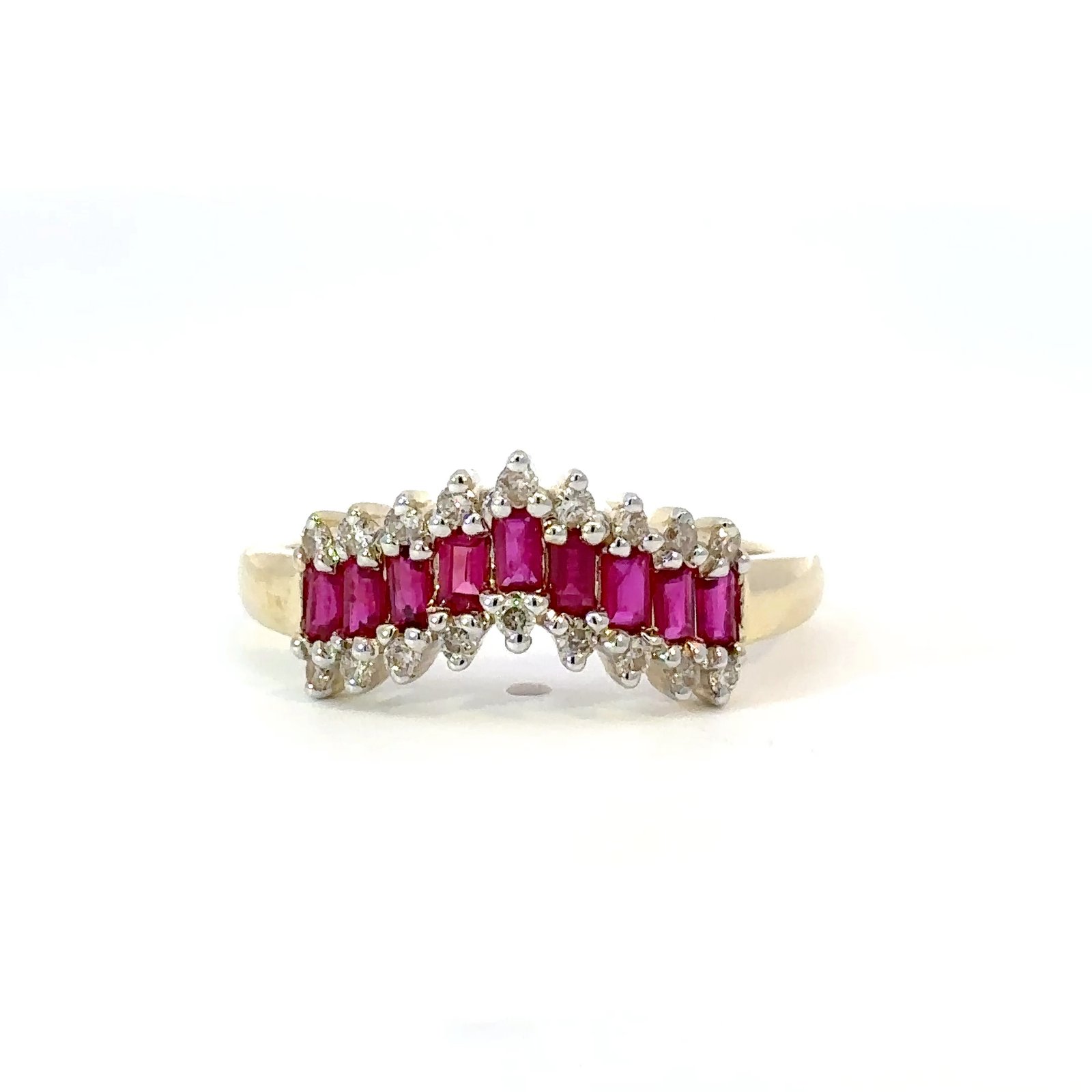 Metal: 9K Yellow GoldRuby Total Weight: 0.47ctDiamond Total Weight: 0.19ctDiamonds Colour/Clarity: H/SIRing Size: OProduct ID: 195305